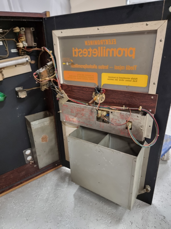 Toimintaa ei testattu. Ei avainta. Ylänurkasta puuttuu pala. L: 62cm K: 92cm