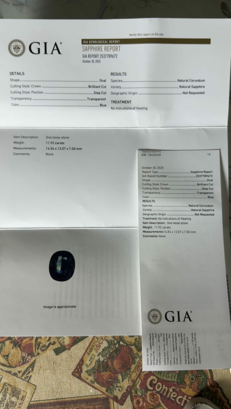 #1184 11,92ct sinisafiiri, erittäin tumma + GIA -todistus