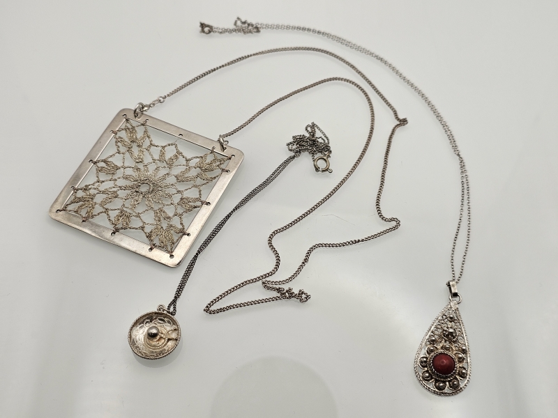 #1632 - 3kpl hopeisia kaulakoruja