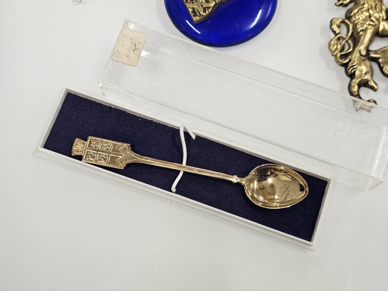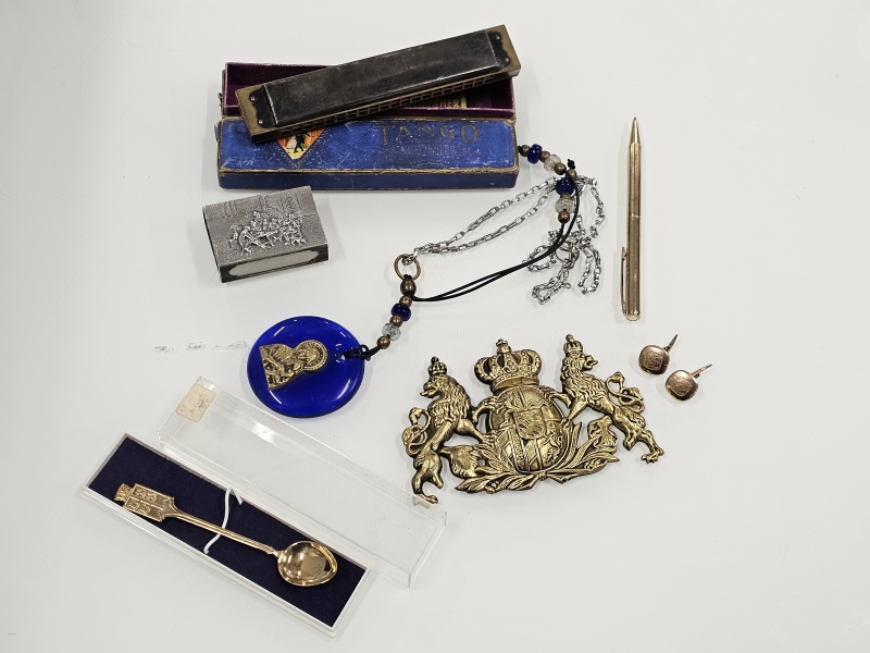 #2179 - Erä tavaraa: Mm. hopealusikka [10g], kalvosinnapit kultalevyillä ym.