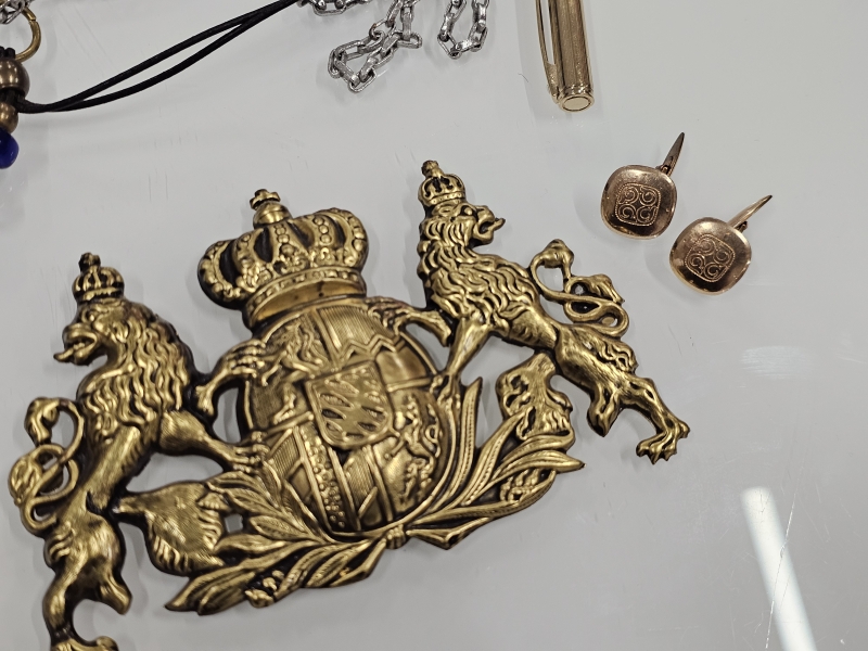 #2179 Erä tavaraa: Mm. hopealusikka [10g], kalvosinnapit kultalevyillä ym.