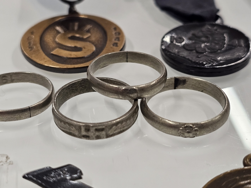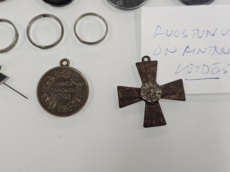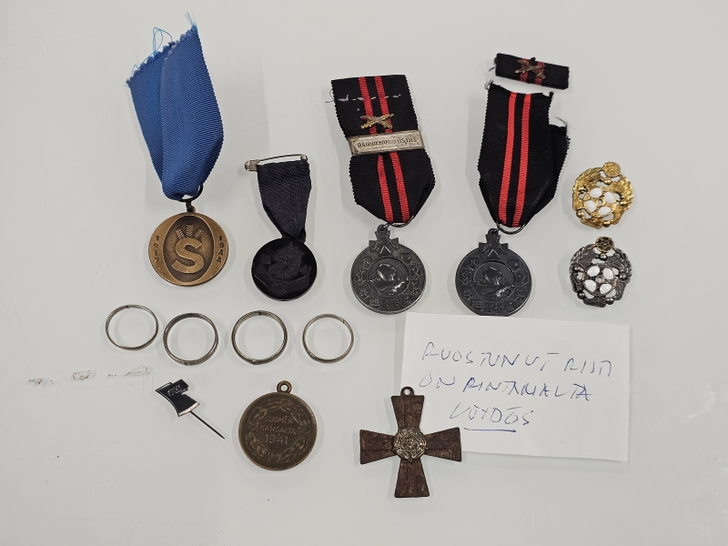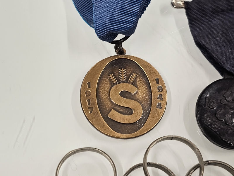 Mm. Suojeluskuntien perinnemitali, korvaussormuksia ym.