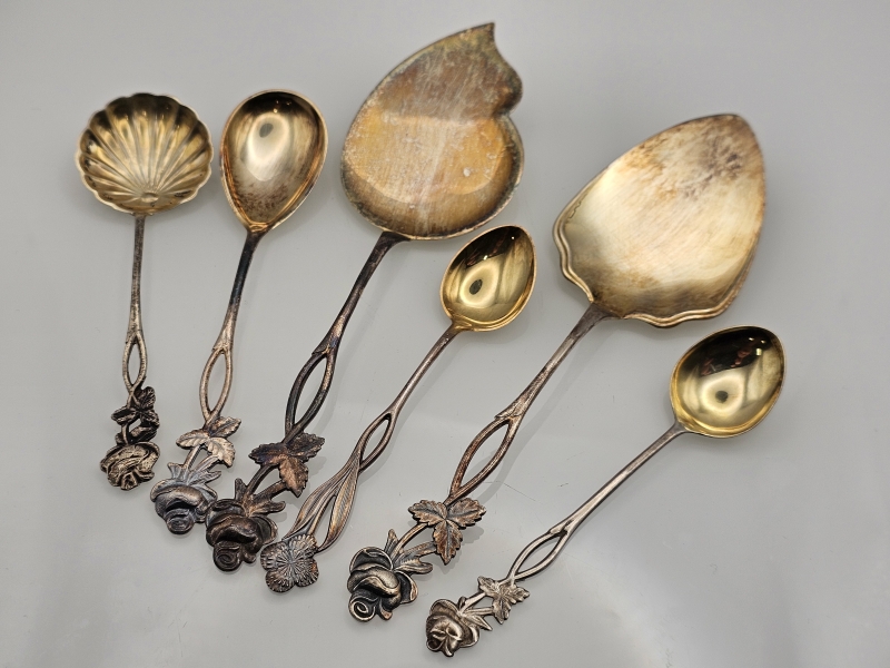 #936 - Erä hopeisia ottimia kukkapäillä, 813-830h, 105g