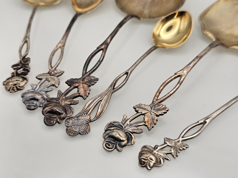 #936 Erä hopeisia ottimia kukkapäillä, 813-830h, 105g