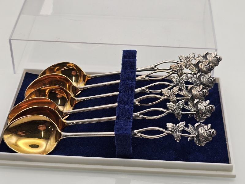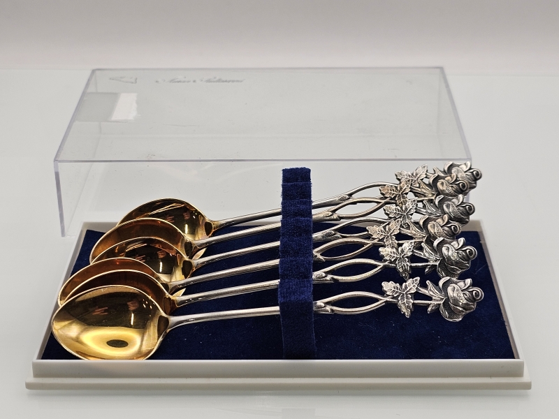 #1624 - 6kpl hopeisia kahvilusikoita, 830h, 59g