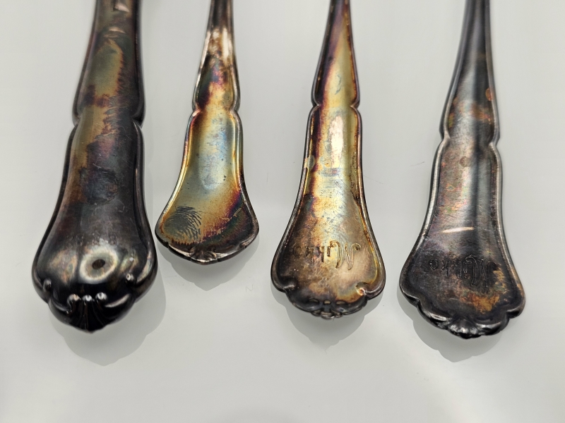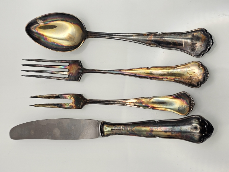 #1625 Hopeisia ottimia: Lusikka ja haarukat 830h, 90g + teräskärkinen veitsi