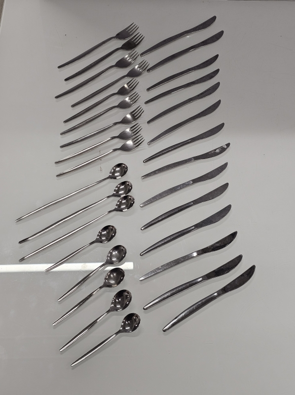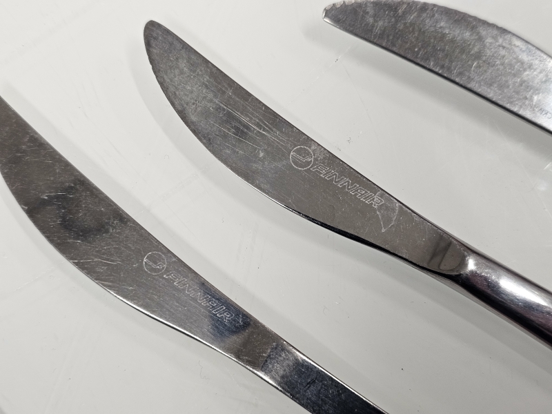 Käyttökulumaa. Osassa veitsiä Finnair -logo