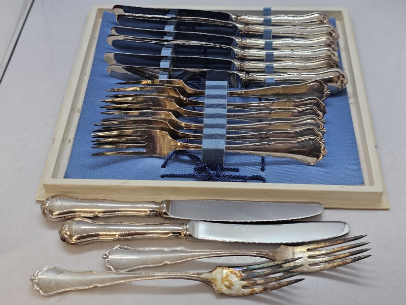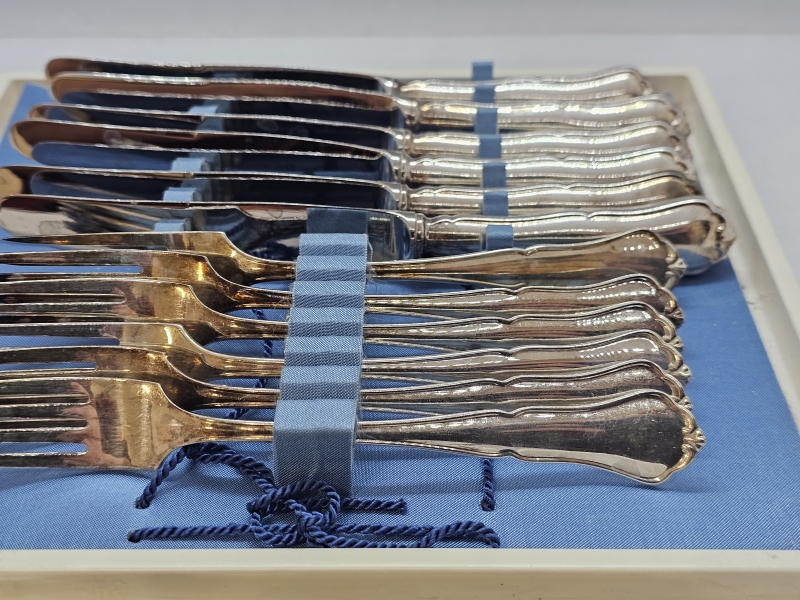 #942 Hopeisia chippendale -aterimia 8+8kpl, 830h, 332g + teräskärkiset 516g