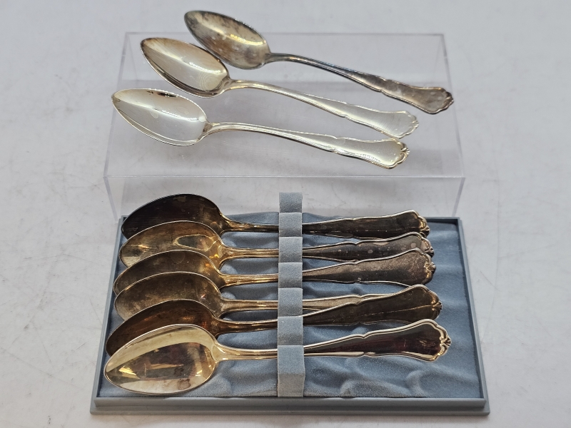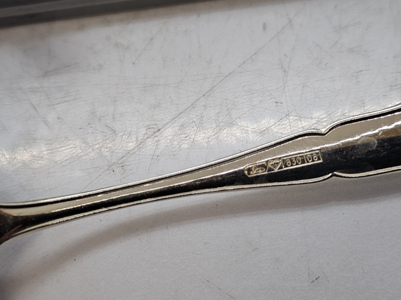 #944 9kpl hopeisia chippendale kahvilusikoita, 830h, 117g