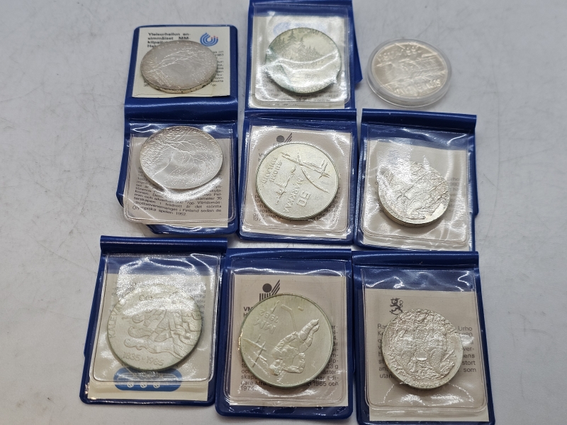 #949 - 9kpl hopeisia juhlarahoja: 500h = 170g & 925h = 24g
