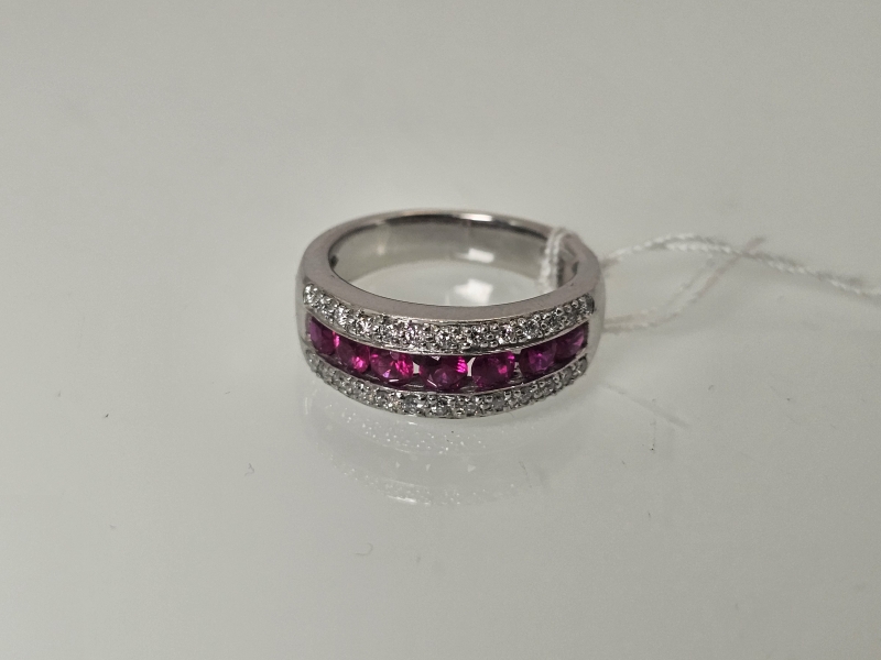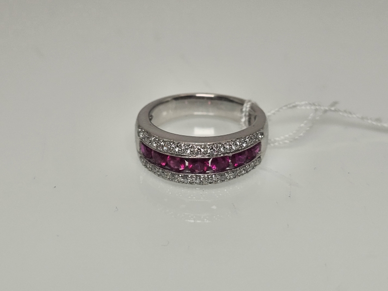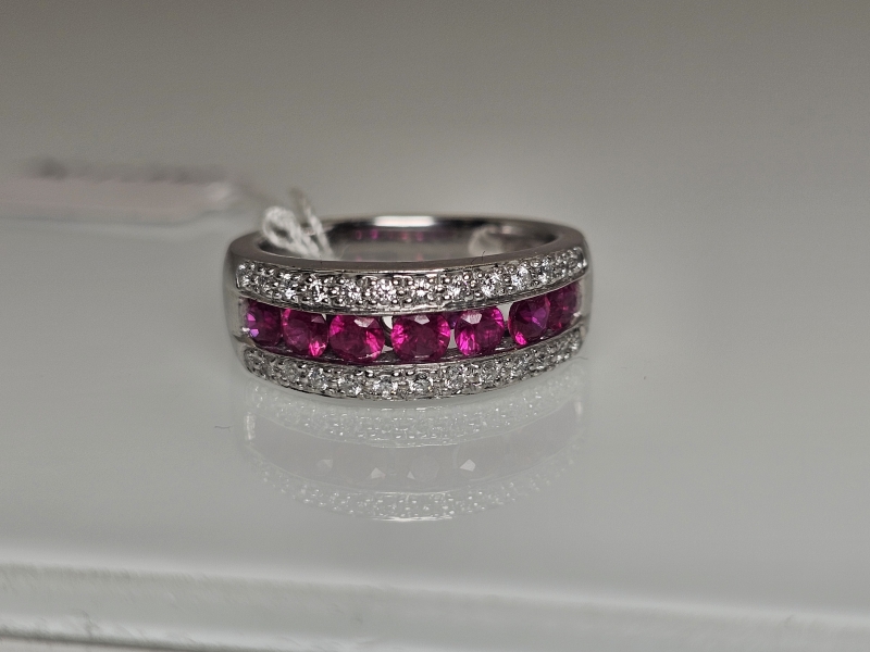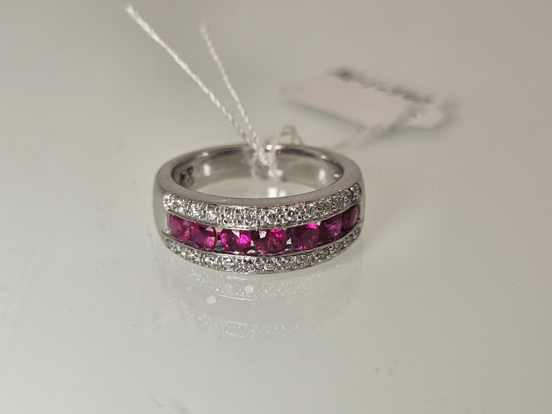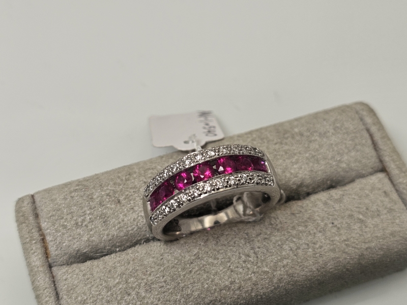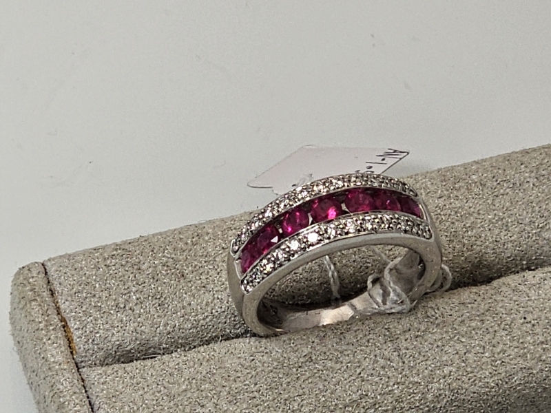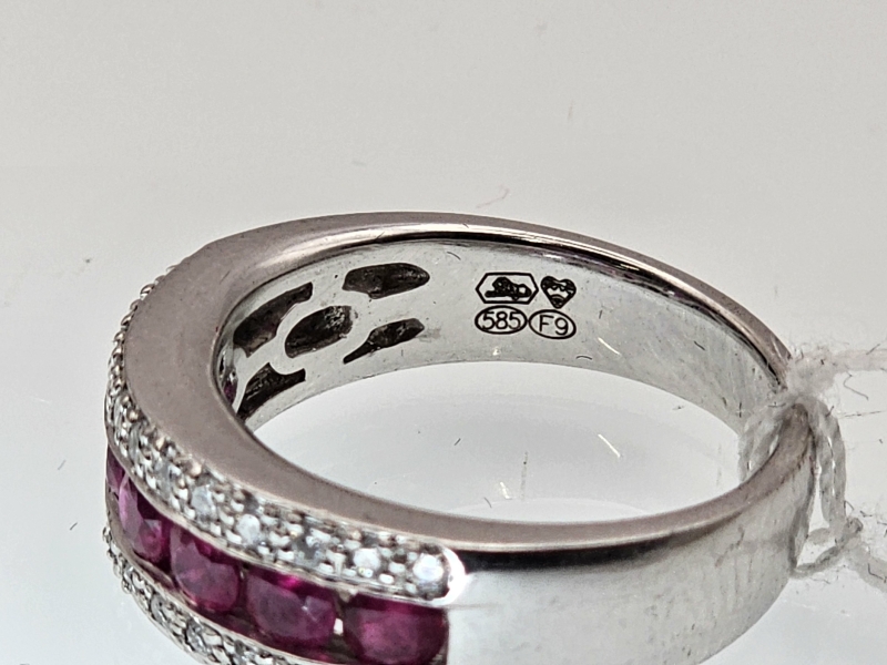 #1013 14k valkokultainen sormus rubiineilla [n. 1,05ct] ja timanteilla [n. 0,26ct], Kultakeskus Oy, 8,47g