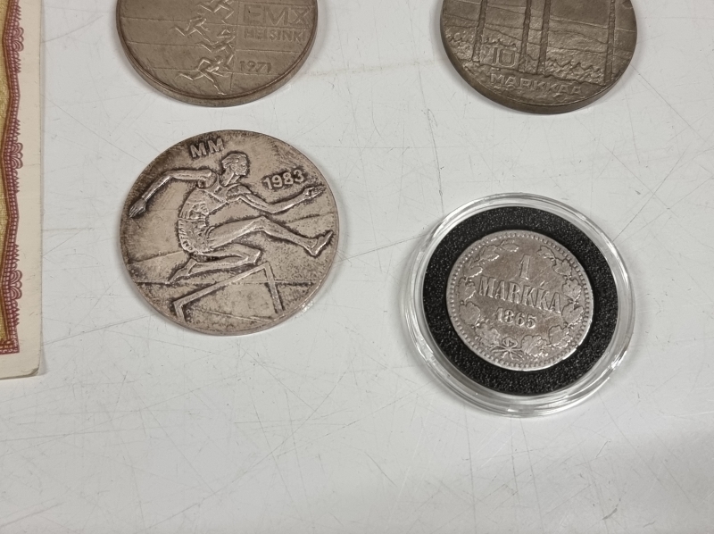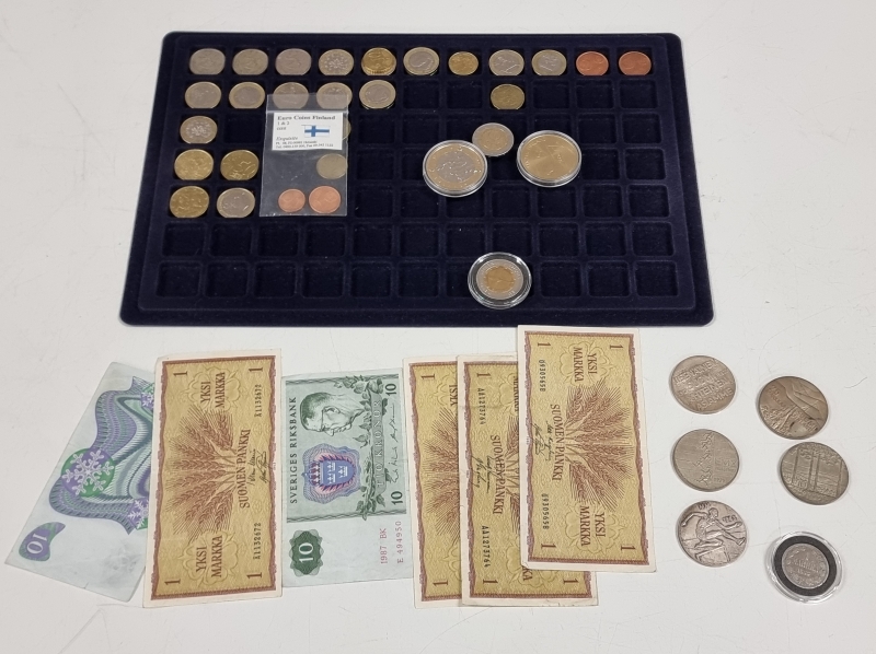 #957 - Suomalaisia hopearahoja, 1 euron kolikoita ym. 500-868h
