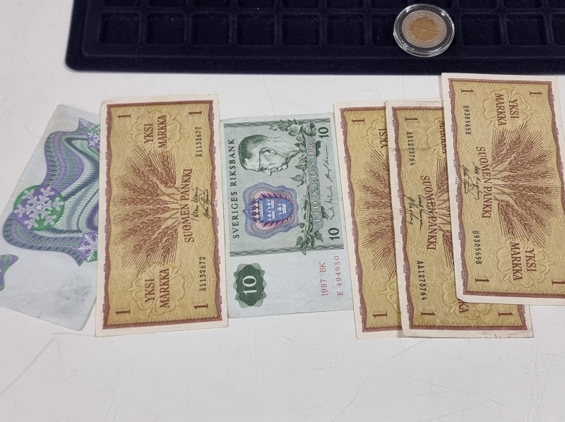 #957 Suomalaisia hopearahoja, 1 euron kolikoita ym. 500-868h