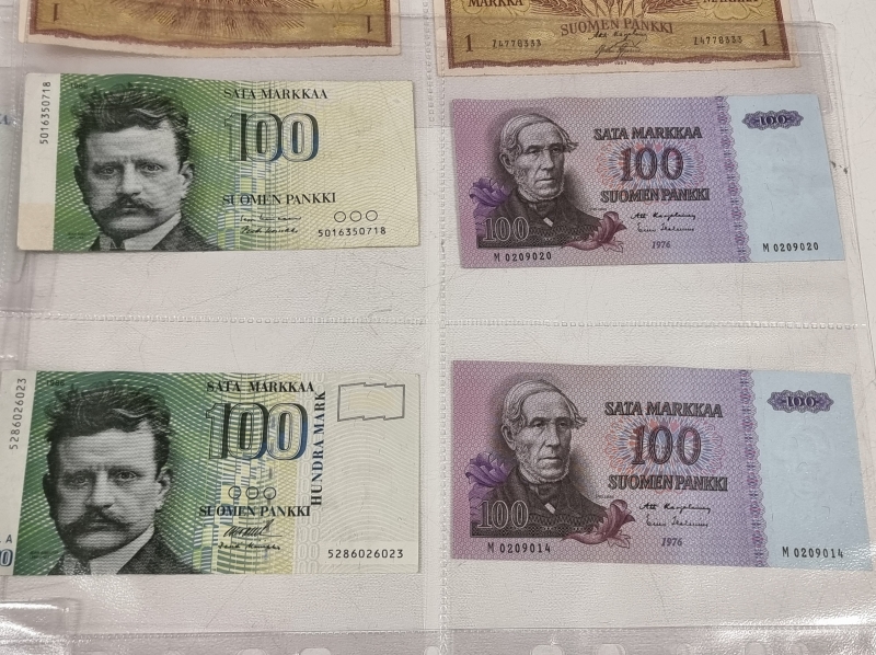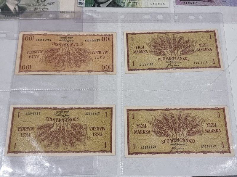 #1933 Suomalaisia seteleitä: 100mk 1976, 10mk 1963 ym.