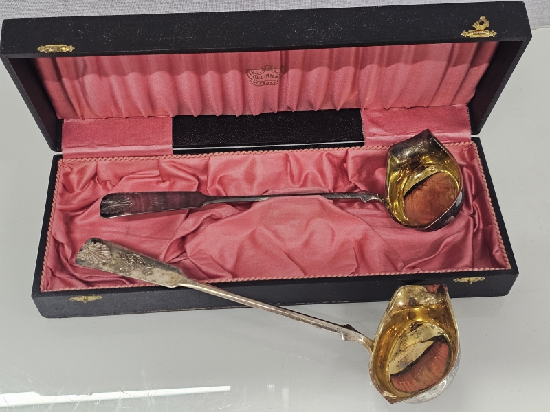 #965 - 2kpl hopeisia isoja musla -kauhoja, 813h, 241g