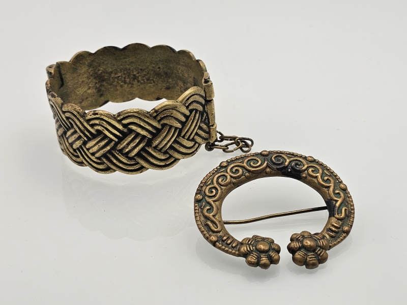 #985 - 2kpl pronssisia Kalevala korun koruja: Karjalainen nauhapujotelma & solki