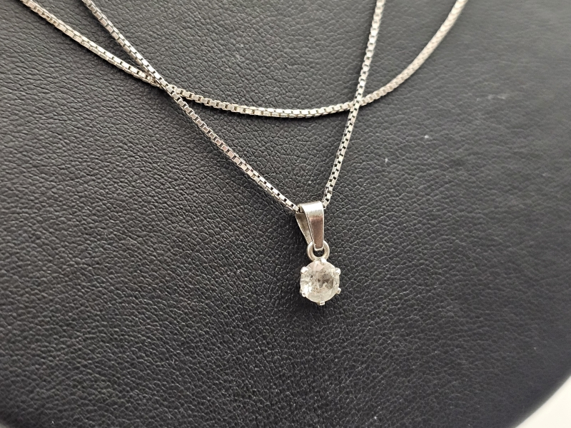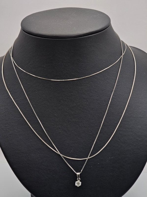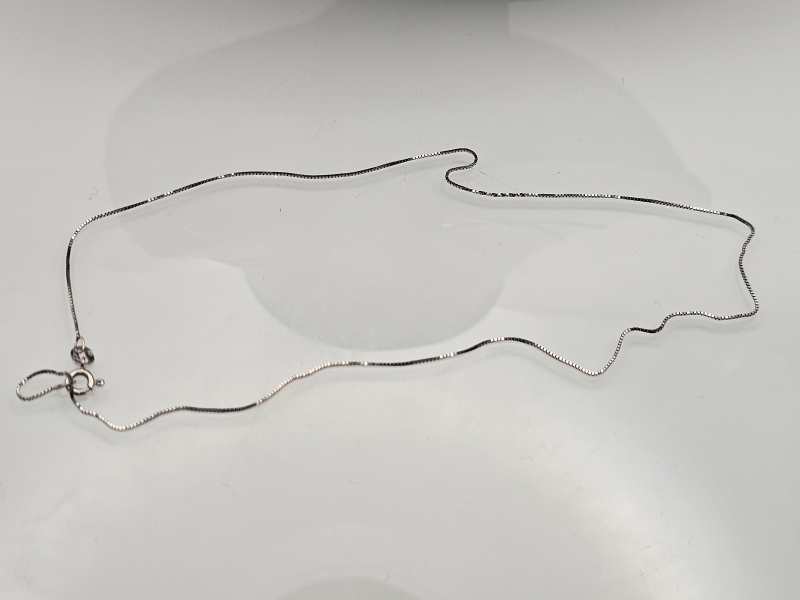 #990 - 14k valkokultainen ketju [1,09g] + 2kpl hopeaketjuja