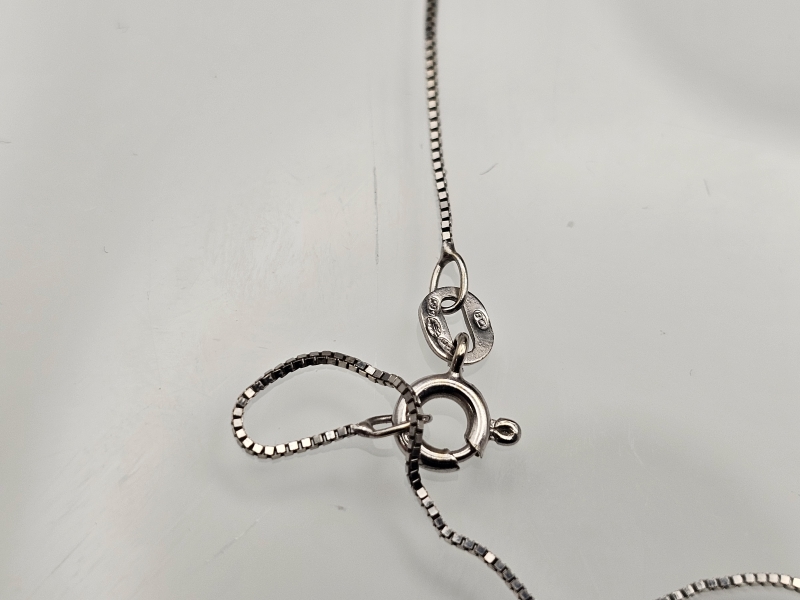 #990 14k valkokultainen ketju [1,09g] + 2kpl hopeaketjuja