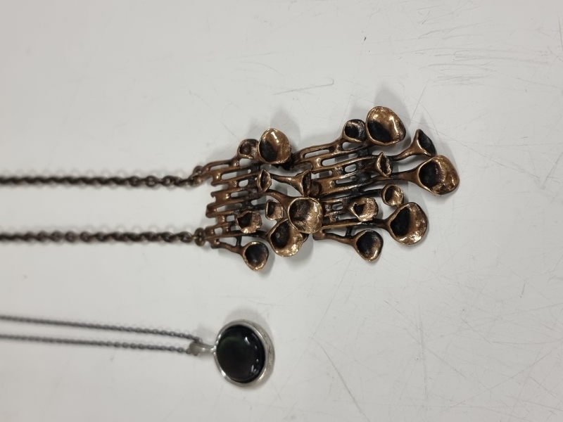 #2153 - Erä koruja, mm. pronssinen Hannu Ikonen "Jäkälä" ja Kalevala Koru "Tuukkalan solki"