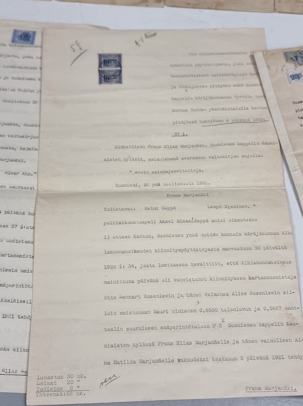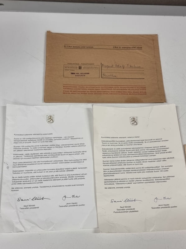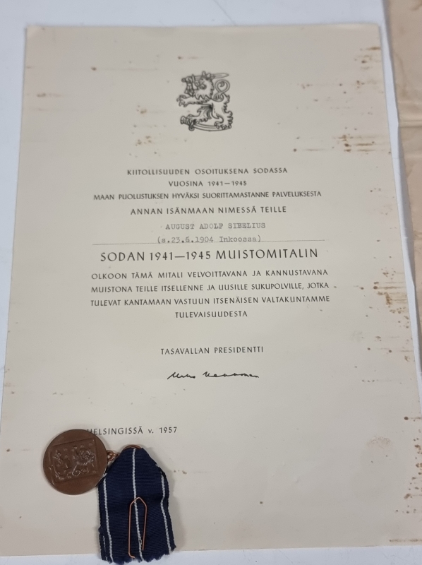 #1832 Erä myöntökirjoja ja jatkosodan muistomitali ym. nimillä Sibelius, Rosenlew