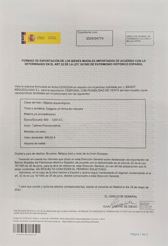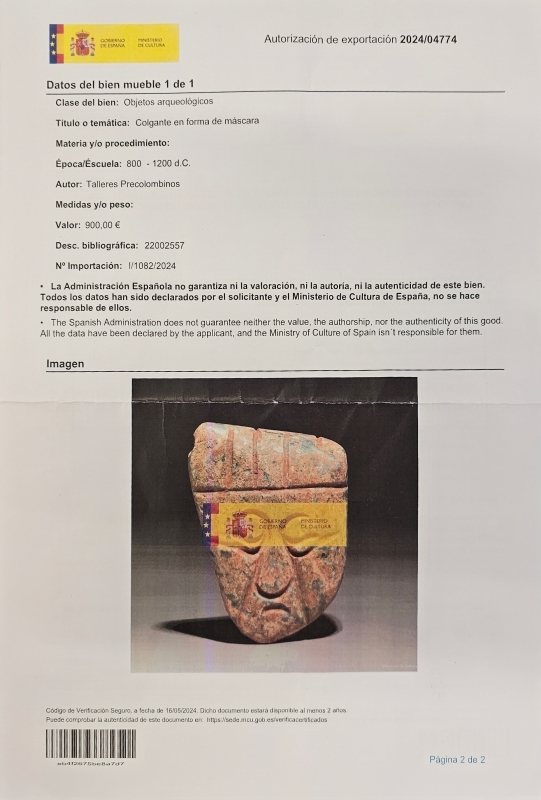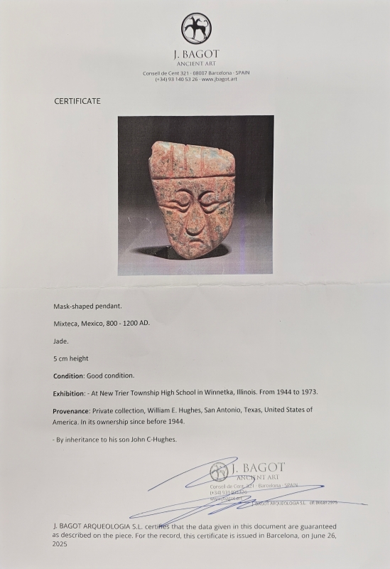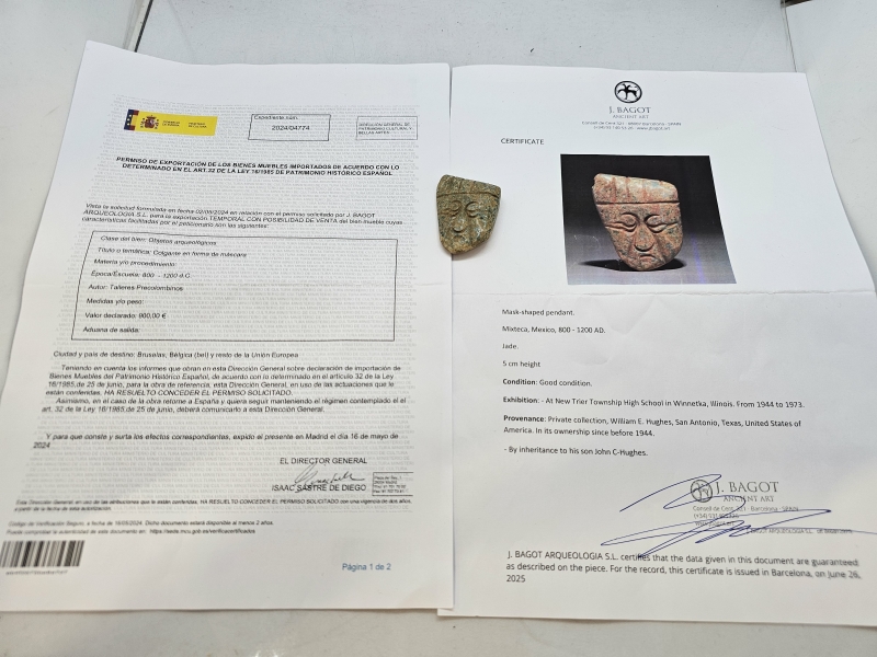 #1833 Arkeologinen prekolumbialainen nefriitti-jade -riipus, Mixteca -kulttuuri noin 800-1200 jaa. *KATSO LISÄTIEDOT*