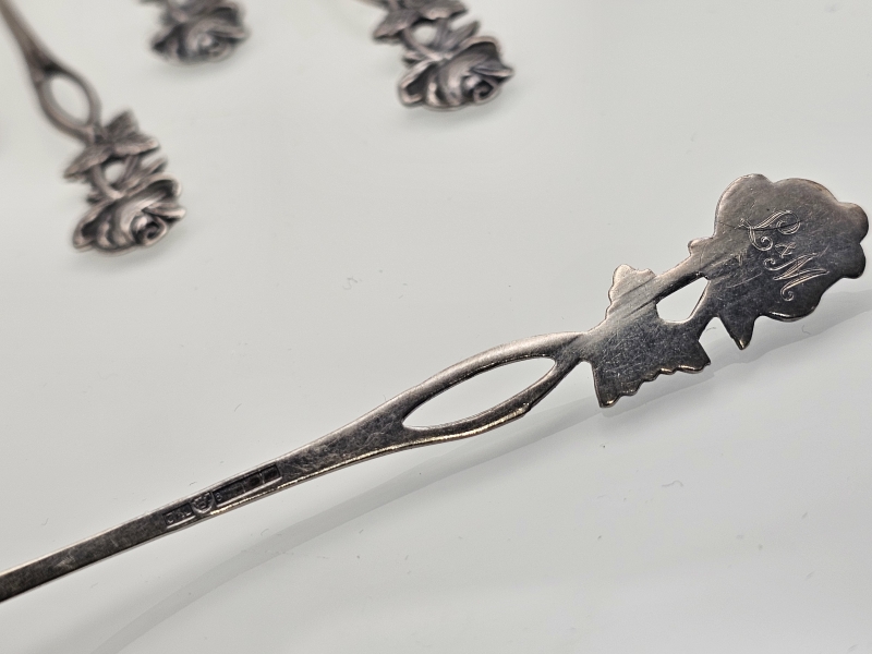 #822 - 11kpl hopeisia kukkapäisiä kahvilusikoita, 813h, 97g