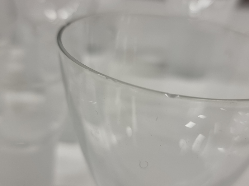Kolmessa lasissa reunavika. Korkein 11cm
