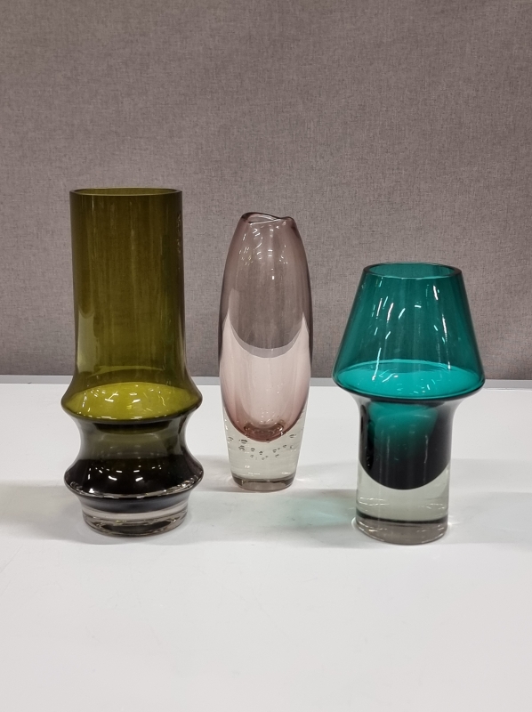 #75 3kpl taidelasimaljakoita, mm. Aimo Okkolin Stromboli