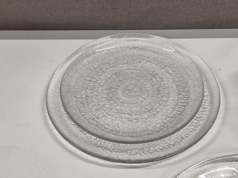 Yhden lautasen reunassa pieni reunavika. Isoimman halkaisija 36cm.