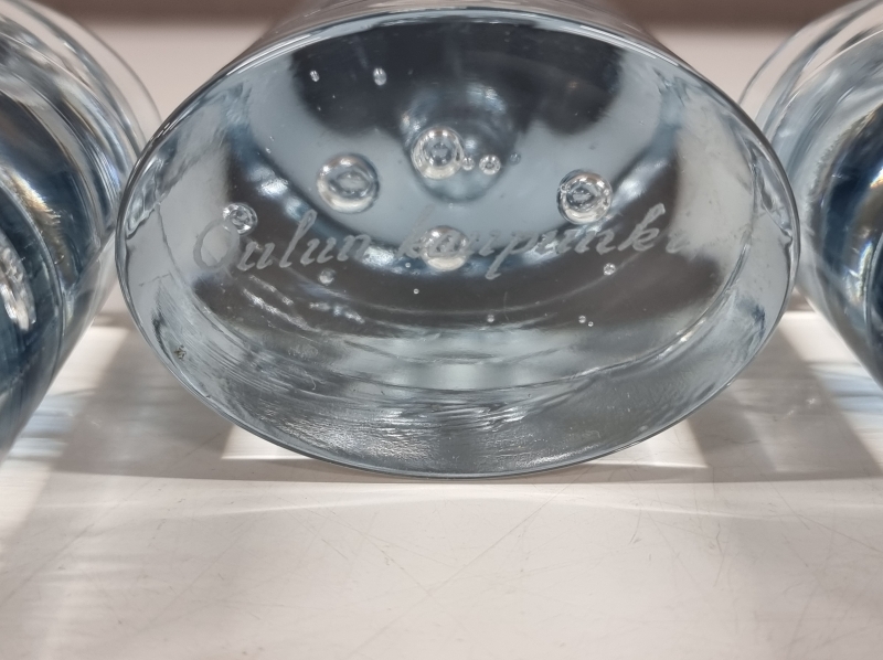 Korkeimman pohjassa kaiverrus Oulun kaupunki. Korkein 13 cm.