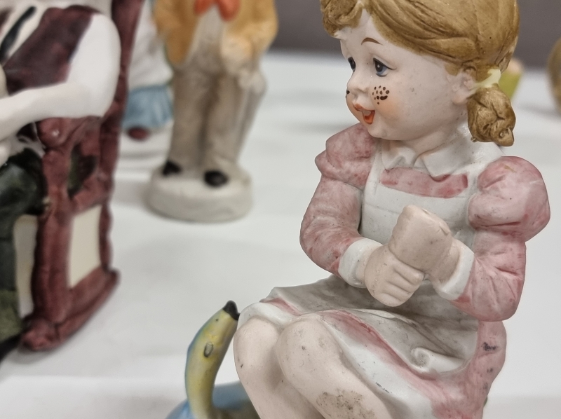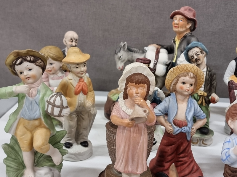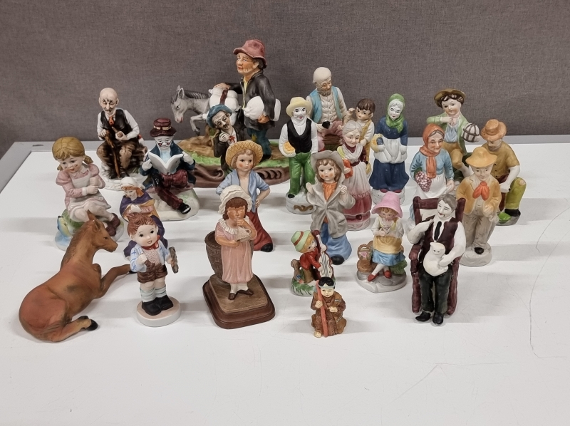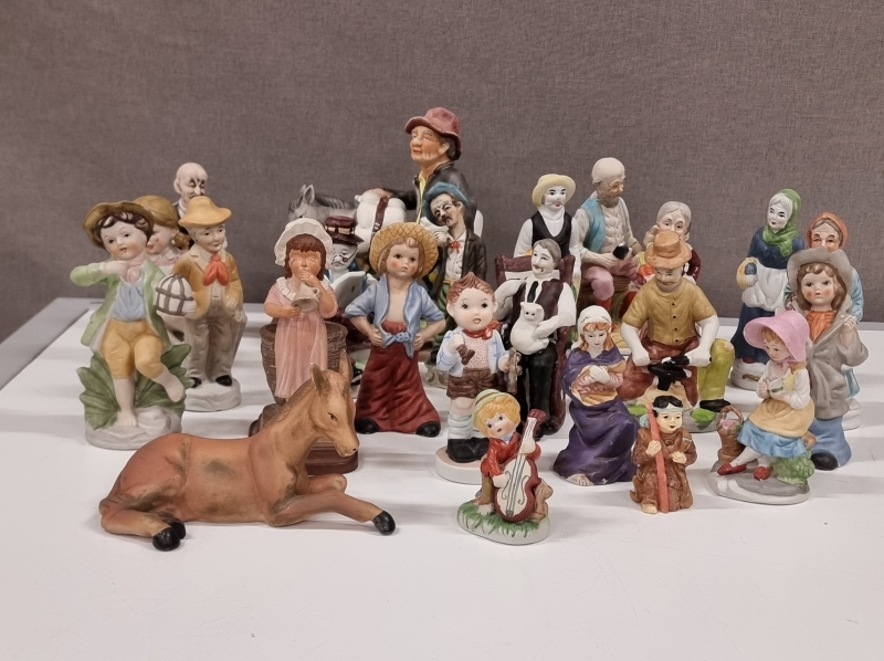 22kpl +1 muovinen. Yhdessä korjattu jalka, yhdessä kädessä vikaa, isoimmasta pala pois. Korkein 22cm.