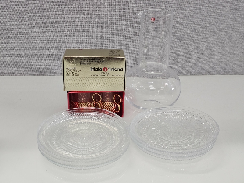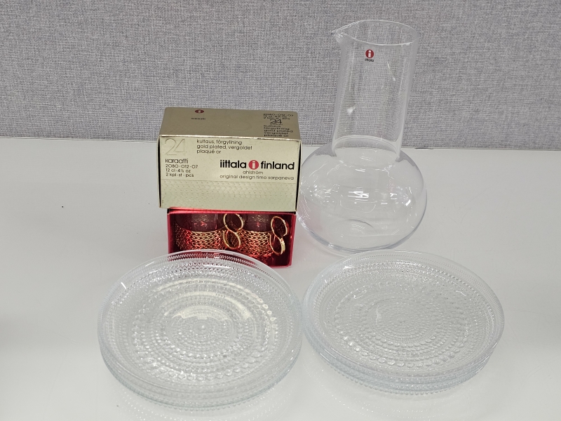 #219 Kaj Franck karahvi 1621 & 2kpl T.Sarpaneva Karaatti -kuppeja + 6kpl Kastehelmi lautasia