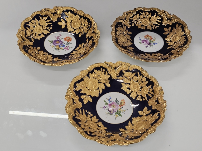 #722 - Poikkeuksellisen näyttävä kolmen Meissen -koristelautasen sarja