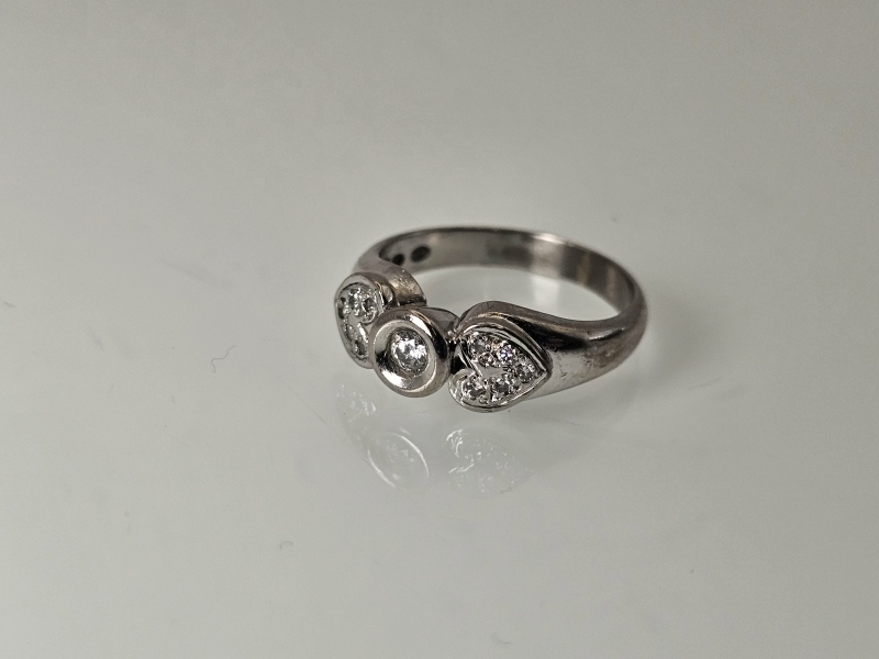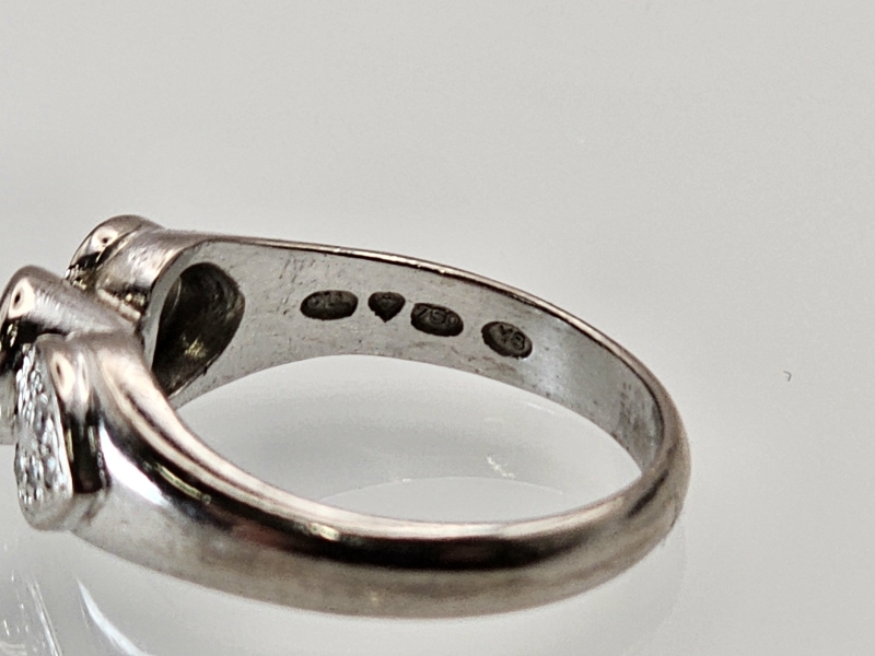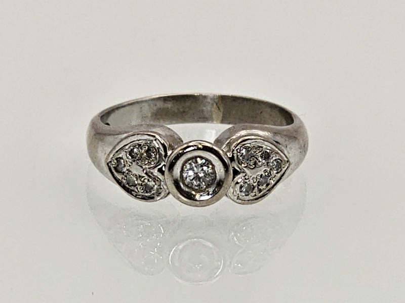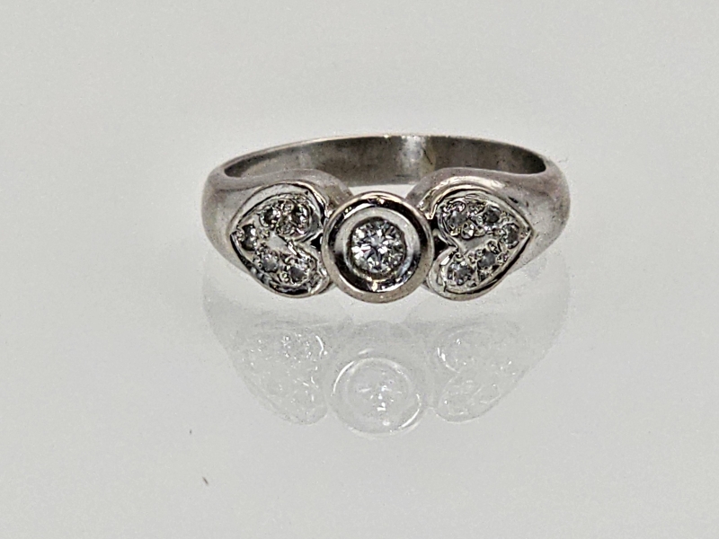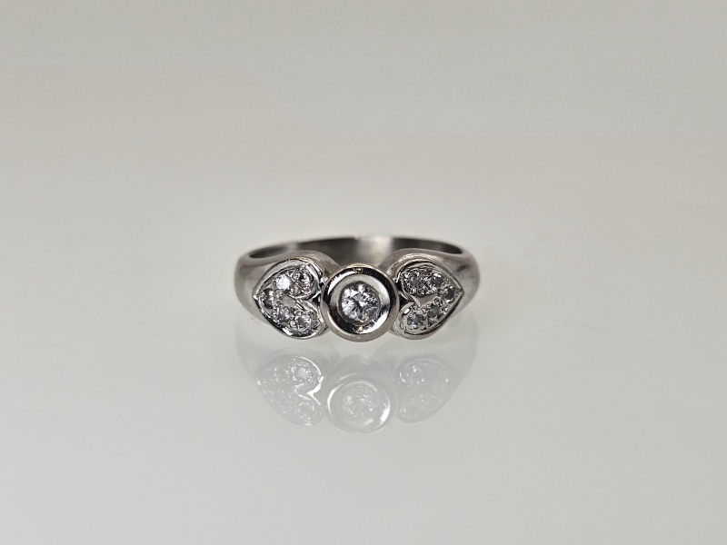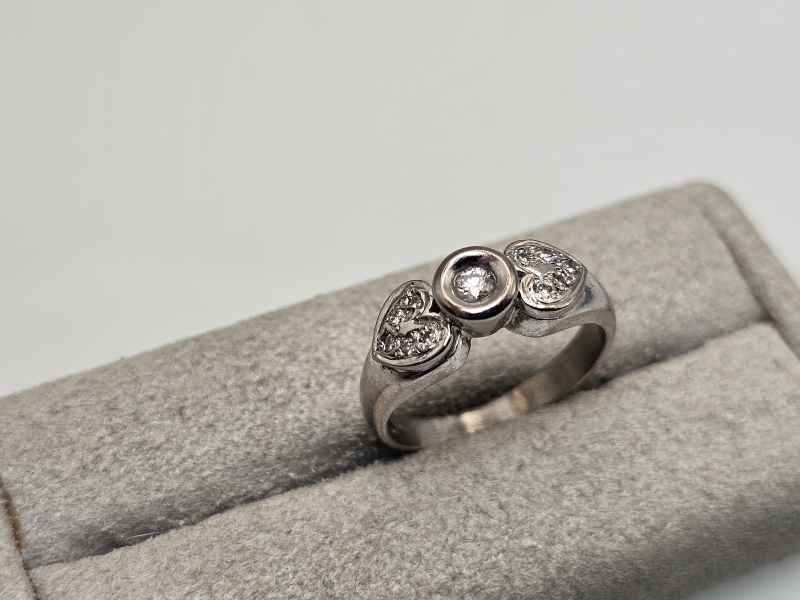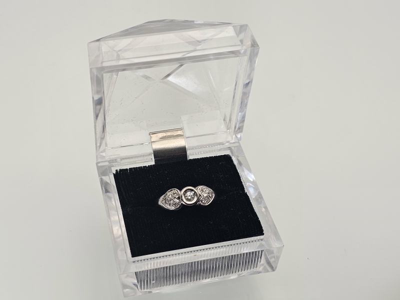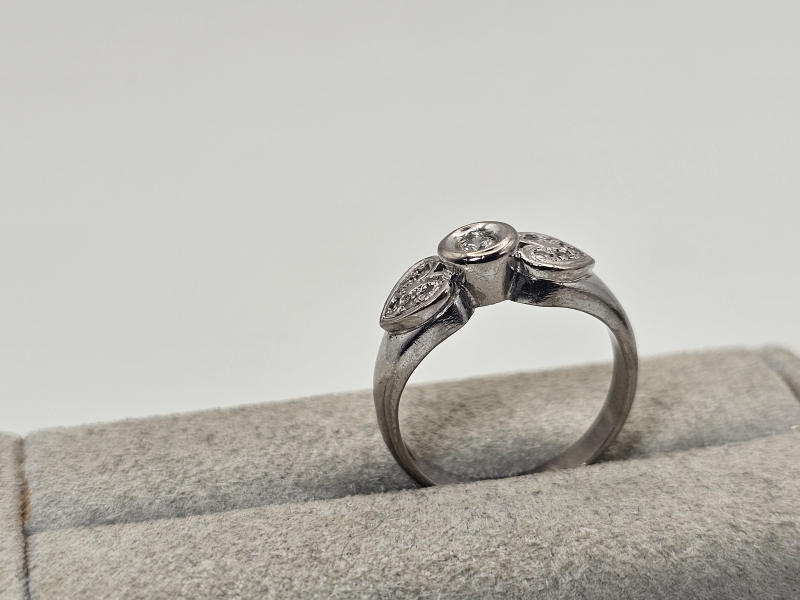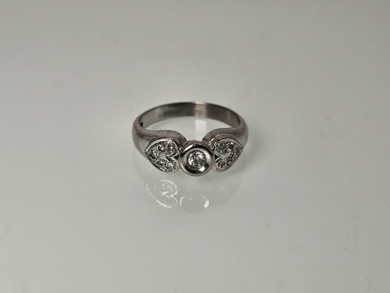 #1147 18k valkokultainen sormus timanteilla joista isoin n. 0,10ct, 5,45g