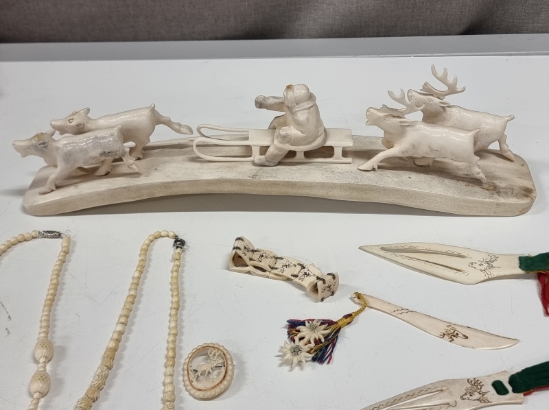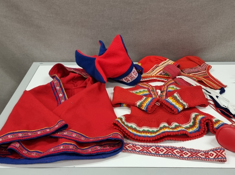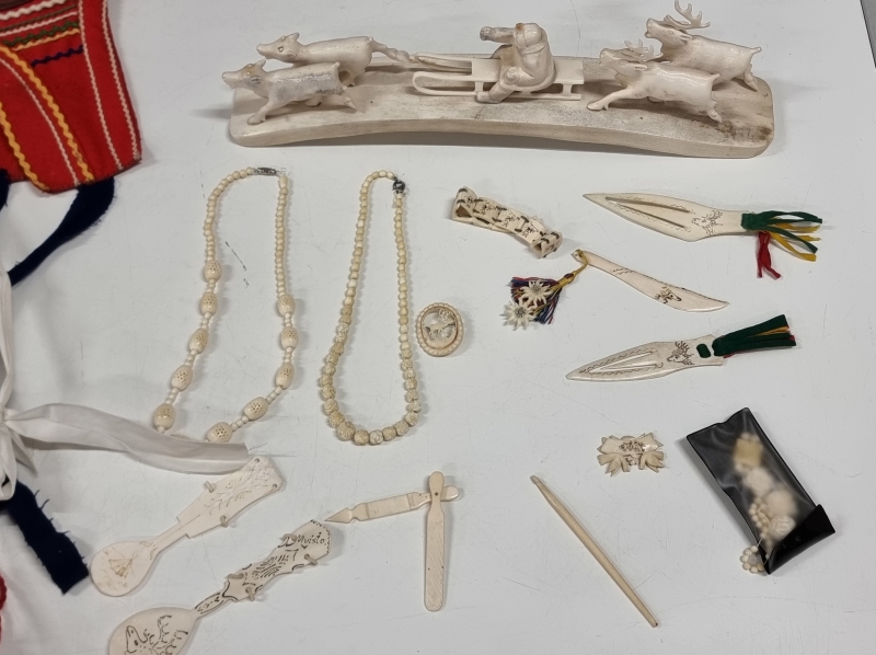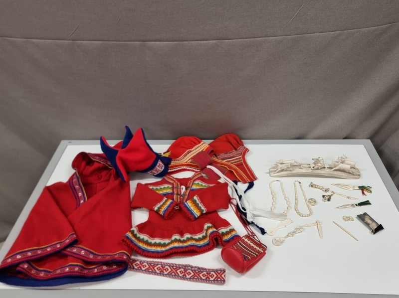 #2218 Lappalaistavaraa, mm. poronluisia kirjanmerkkejä ja lapsen asu