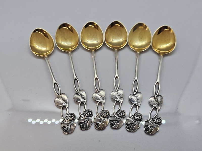 #1153 6kpl hopeisia kahvilusikoita, 830h, 65g