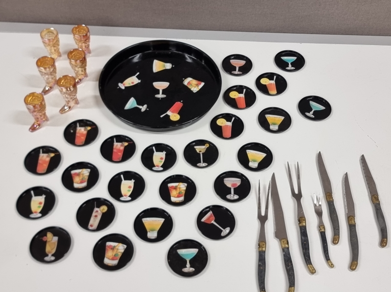 #2215 Juhannussetti: retrotarjotin + lasinaluset, snapsisaappaat ja Laguiole ottimet