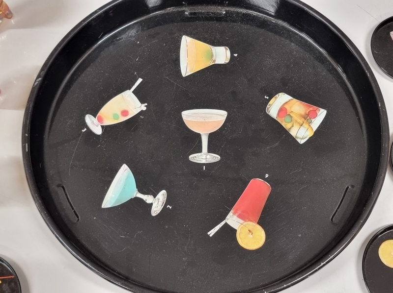 Käyttökulumaa, veitsien koristeet puuttuvat. Tarjottimen halkaisija 30cm.