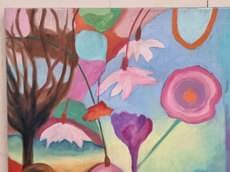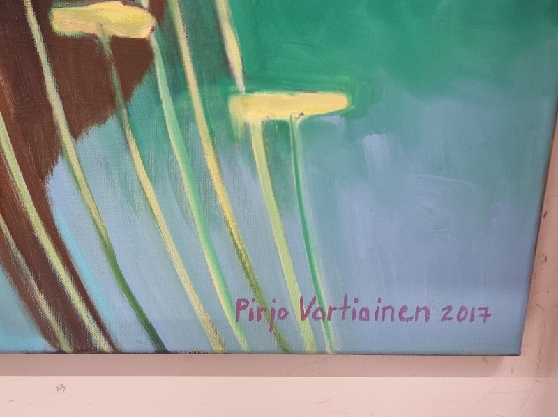 #2225 Öljyvärimaalaus Pirjo Vartiainen, "Uusi alku" v.2017