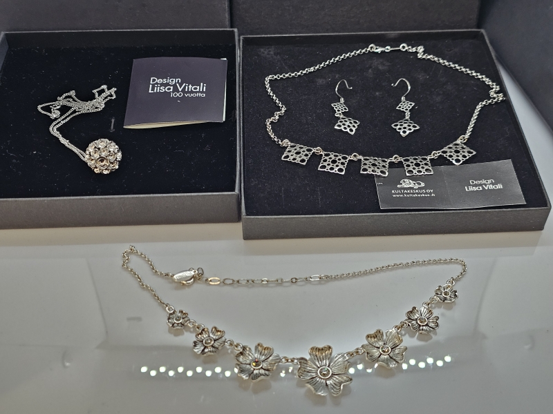 #1167 - 2kpl hopeisia Liisa Vitali -kaulakoruja + tanskalainen Pilgrim