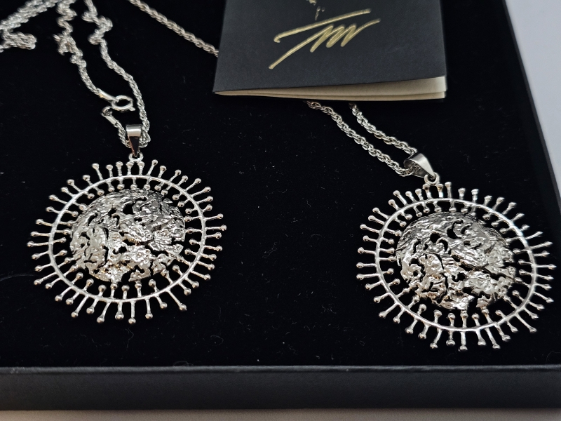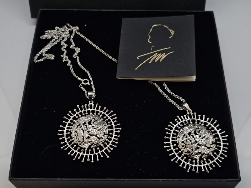 #1168 - 2kpl hopeisia Tapio Wirkkala Täysikuu -kaulakoruja