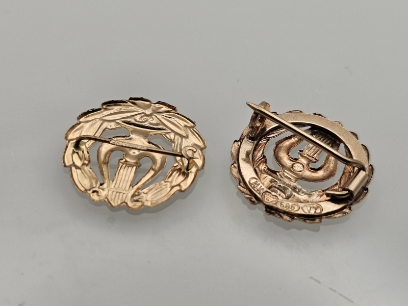 #1227 - 2kpl 14k kultaisia Lyyra rintamerkkejä, 1,67g