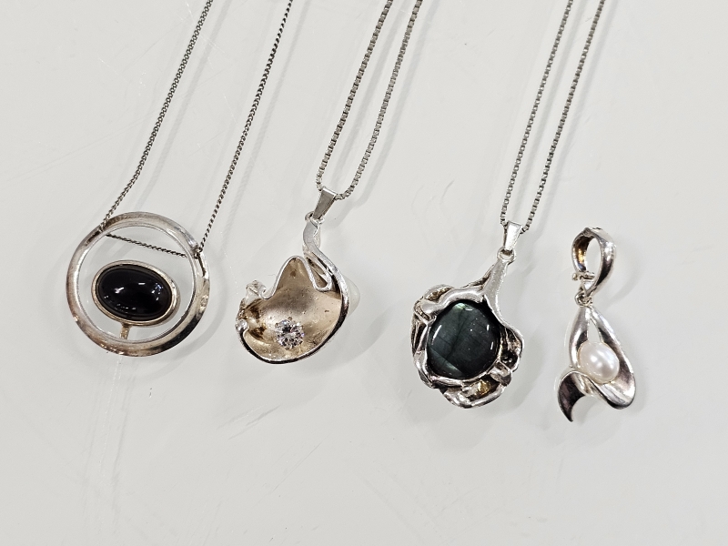 #1246 4kpl hopeisia riipuksia ja 3kpl ketjuja
