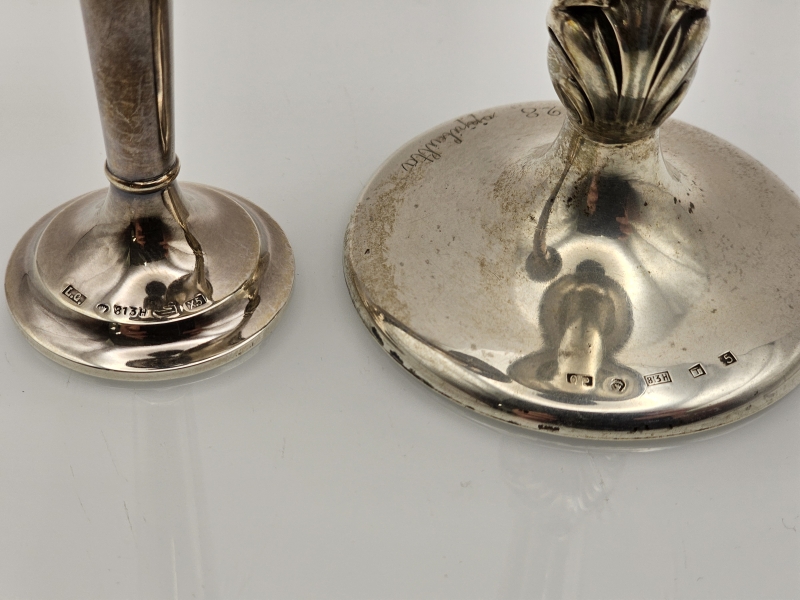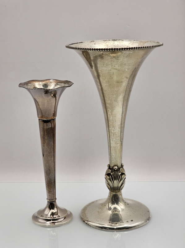 #1463 - 2kpl hopeisia trumpettimaljakoita, 813h, 84g