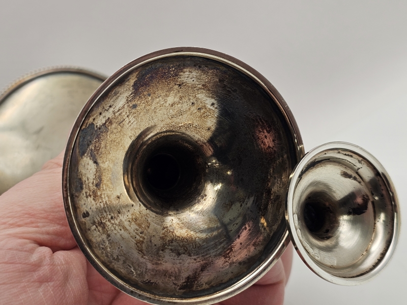 #1463 2kpl hopeisia trumpettimaljakoita, 813h, 84g
