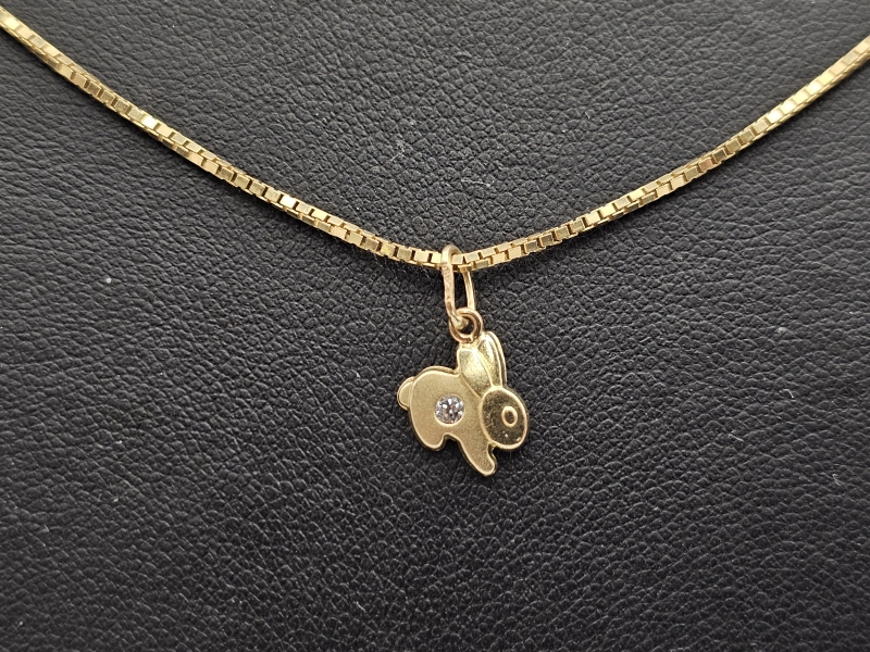 #1452 - 14k kultainen kaulaketju pupuriipuksella, 4,08g