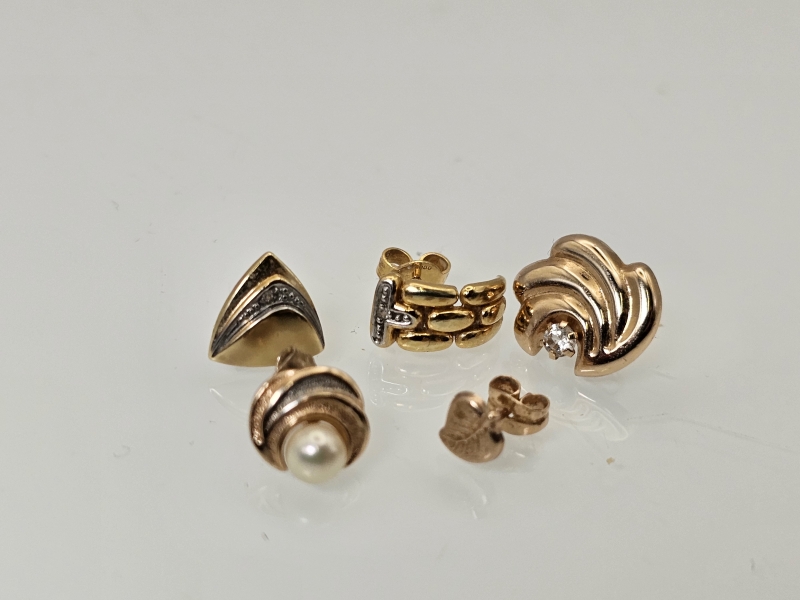 #1483 - 5kpl yksittäisiä 14k kultaisia korvakoruja, 3,54g