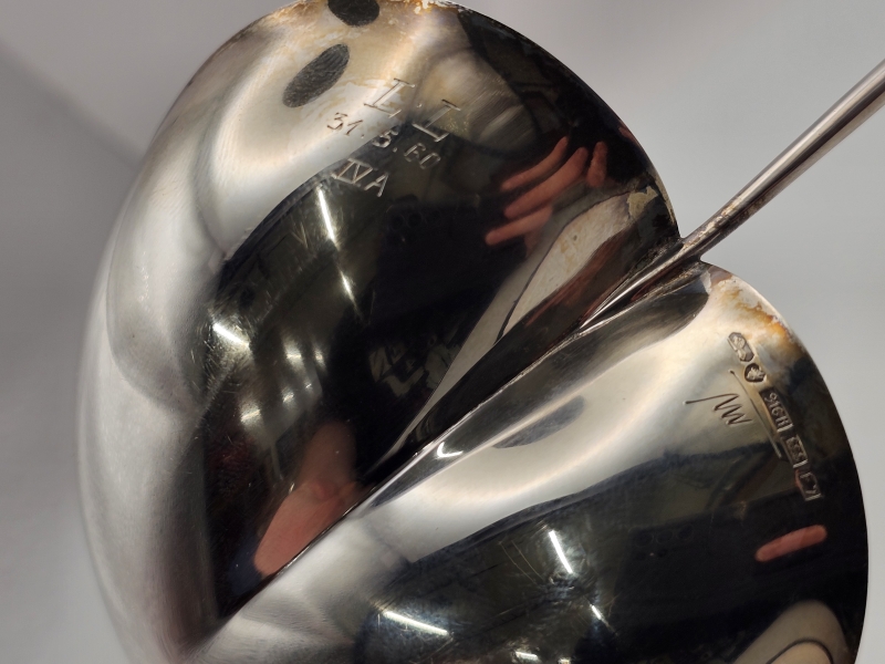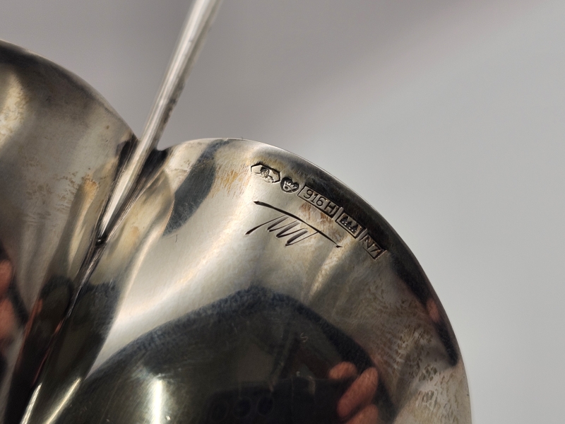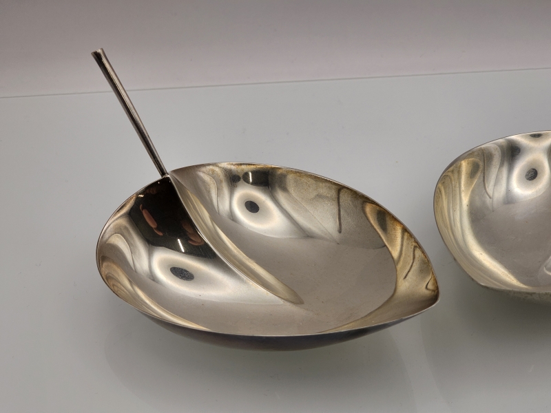 #1419 - 2kpl Tapio Wirkkala hopeisia Lehti -maljoja, 916g, 107g