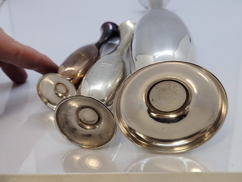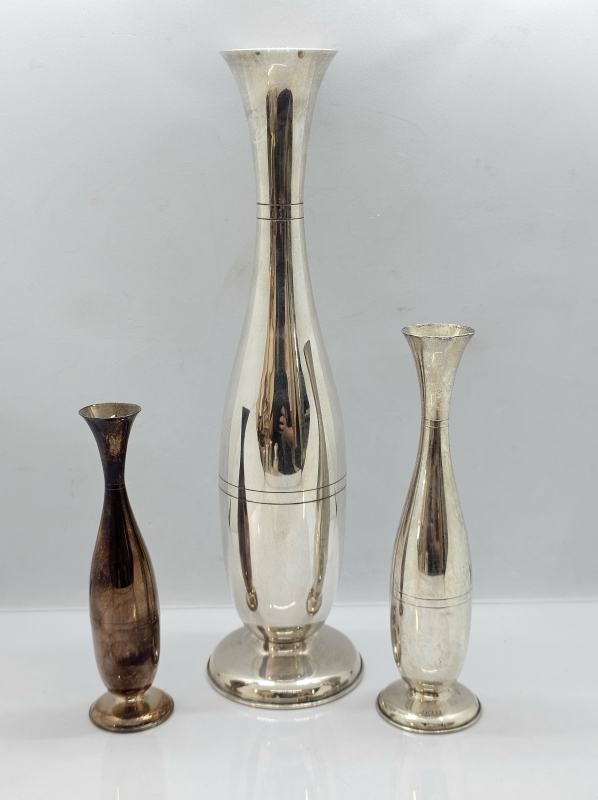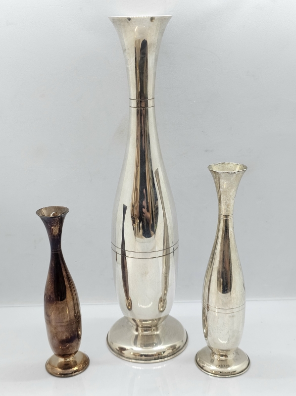 #1422 3kpl hopeisia maljakoita, 813h, 334g