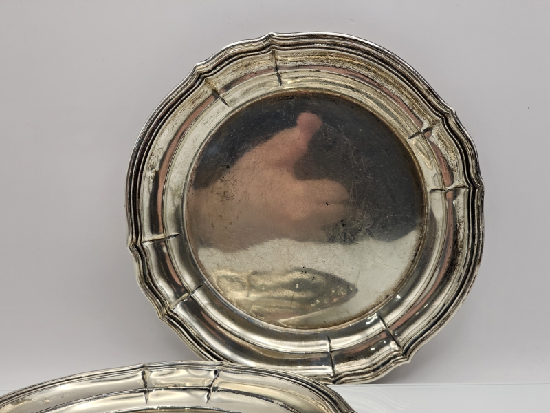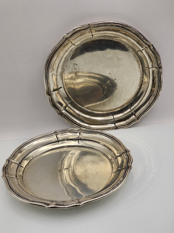 #1461 2kpl hopeisia lautasia, 813h, 203g